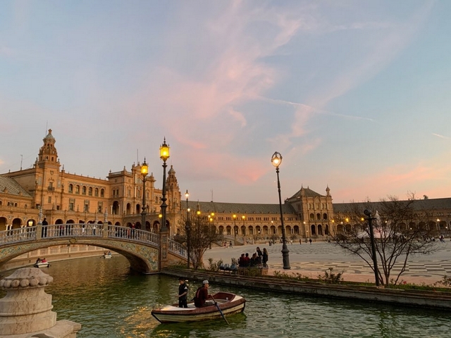 스페인 세비야에 있는 광장입니다. 스페인 4개 도시에 갔다 왔는데 그중 세비야 광장이 제일 예뻤어요. 해 지기 전 시간대에 가서 해질 때까지 있다가 왔습니다. 낮과 밤 둘 다 너무 예뻤어요. 분수 쪽 건물에서 플라멩코 공연을 하니 구경하시면서 기다리셔도 좋습니다.