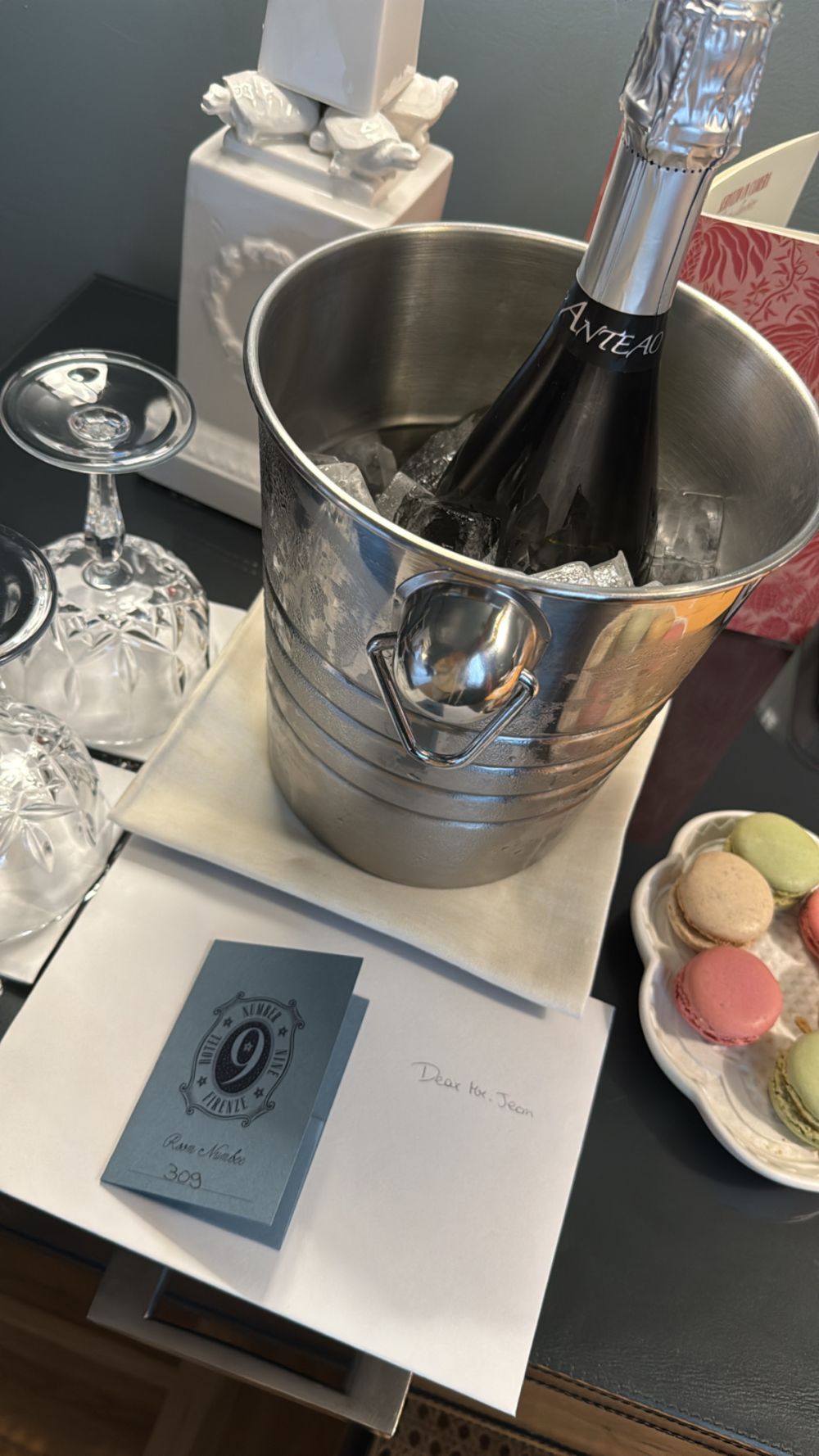 허니문이라고 숙소 5곳중에 3곳은 결혼축하한다고 샴페인을 주셨답니다 >_< 위사진은 피렌체 호텔에서 받은 샴페인인데… 피렌체는 손수 엽서까지써서 주셔서 더 감동 🥹